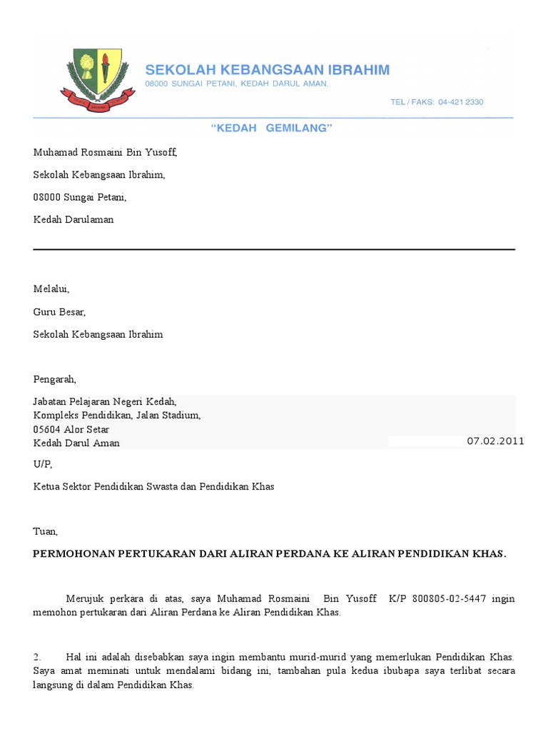 Contoh Surat Rasmi Pertukaran Sekolah Pelajar Rasmi H Dubai Khalifa